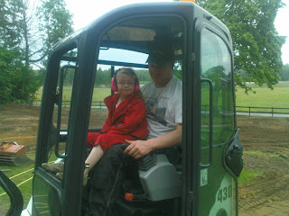 Hon satt och höll i spakarna samtidigt som jag grävde och studerade hur jag gjorde, efter en stund märkte jag hur hon började dra i spakarna åt rätt håll när vi körde.
